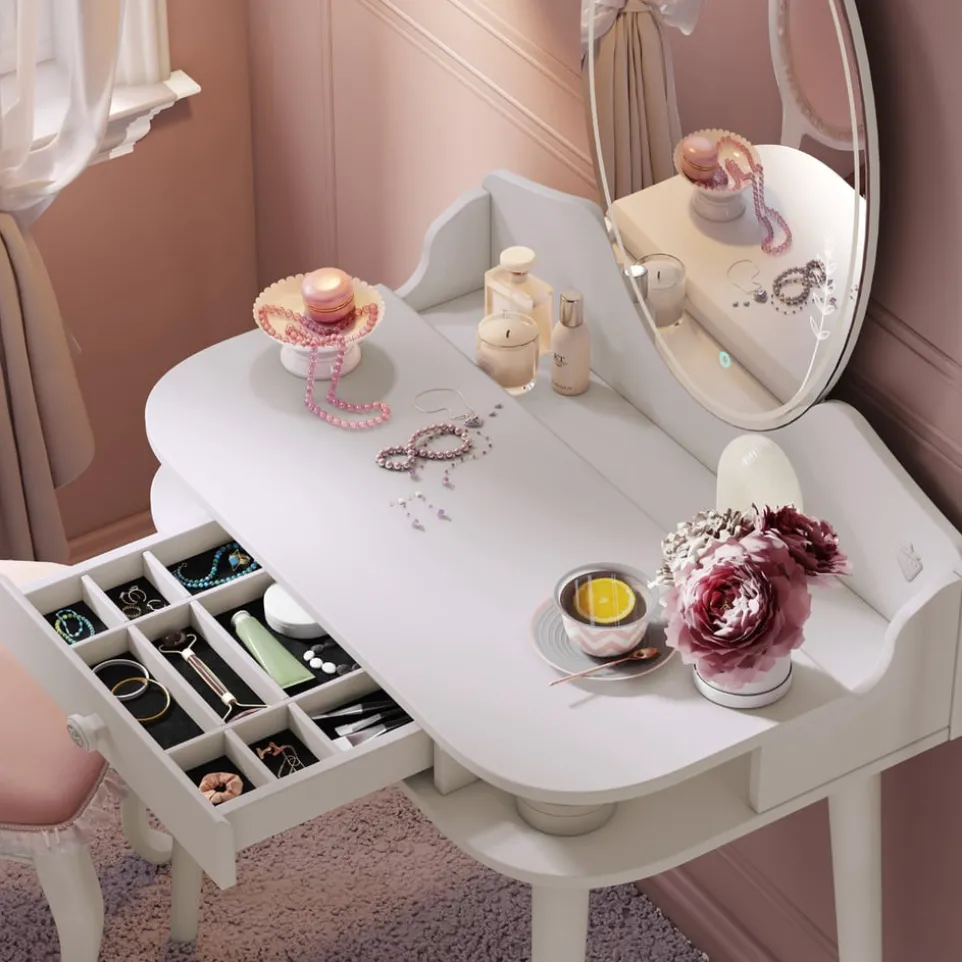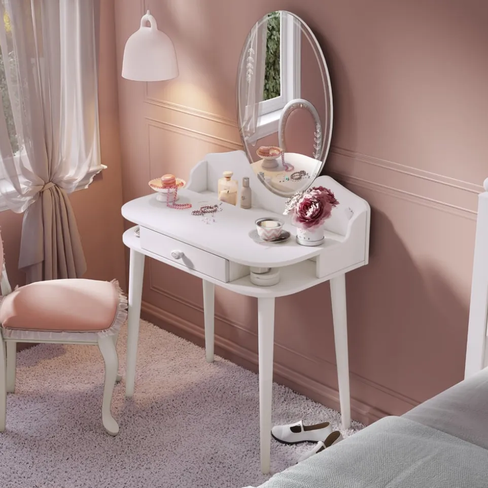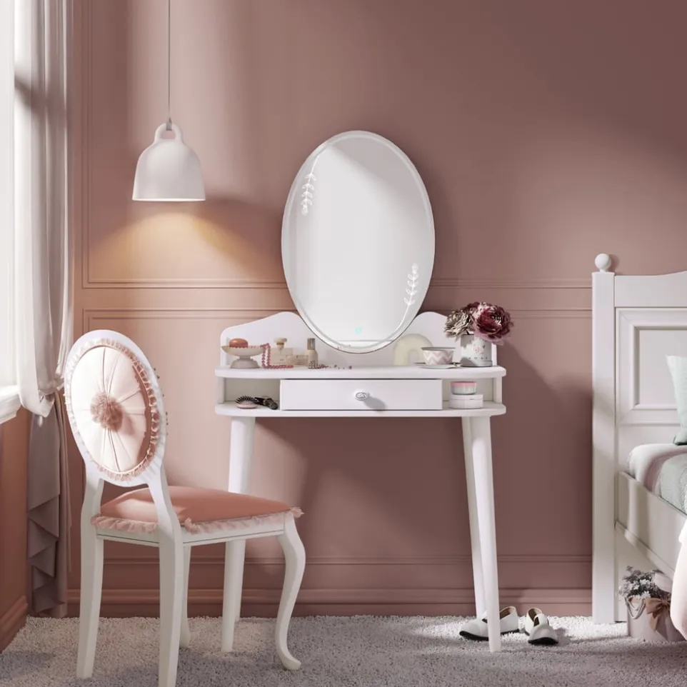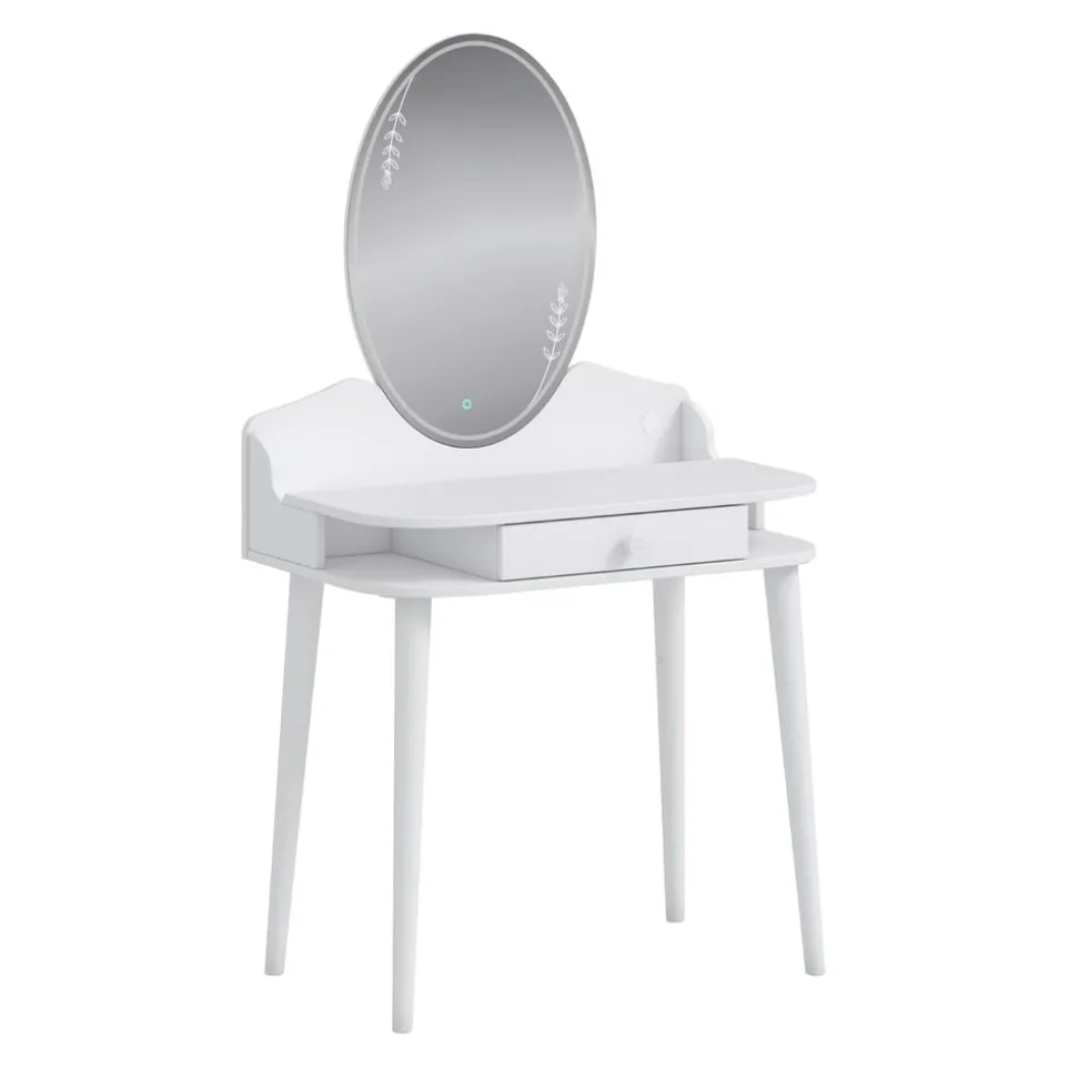Ein Highlight in deinem Schlafzimmer kann der Schminktisch Sissi von Cilek sein, der mit seiner integrierten LED-Beleuchtung überzeugt. Gefertigt aus hochwertigem Holzwerkstoff, vereint er Funktionalität und Stil. Die konisch geformten Beine verleihen dem Tisch eine elegante Note, während die robuste Tischplatte aus demselben Material für Langlebigkeit sorgt. Dieser Schminktisch ist nicht nur ein praktischer Begleiter für deine tägliche Routine, sondern auch ein ästhetisches Möbelstück, das sich hervorragend in verschiedene Einrichtungsstile einfügt. Lass dich von der Kombination aus Design und Technologie inspirieren, die der Sissi Schminktisch bietet.