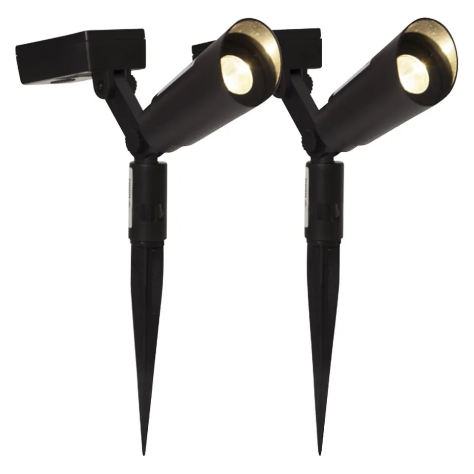 Diese beiden Solarscheinwerfer bringen Licht ins Dunkle. Die Leuchten lassen sich unkompliziert in den Rasen stecken und individuell ausrichten. Über einen Dämmerungssensor schalten sich die umweltfreundlichen LEDs automatisch ein und beleuchten Ihren Garten oder Ihre Einfahrt mit warmweissem Licht. Die integrierten Batterien laden sich bei Sonnenlicht wieder auf. Laufzeit: ca. 6 Stunden.