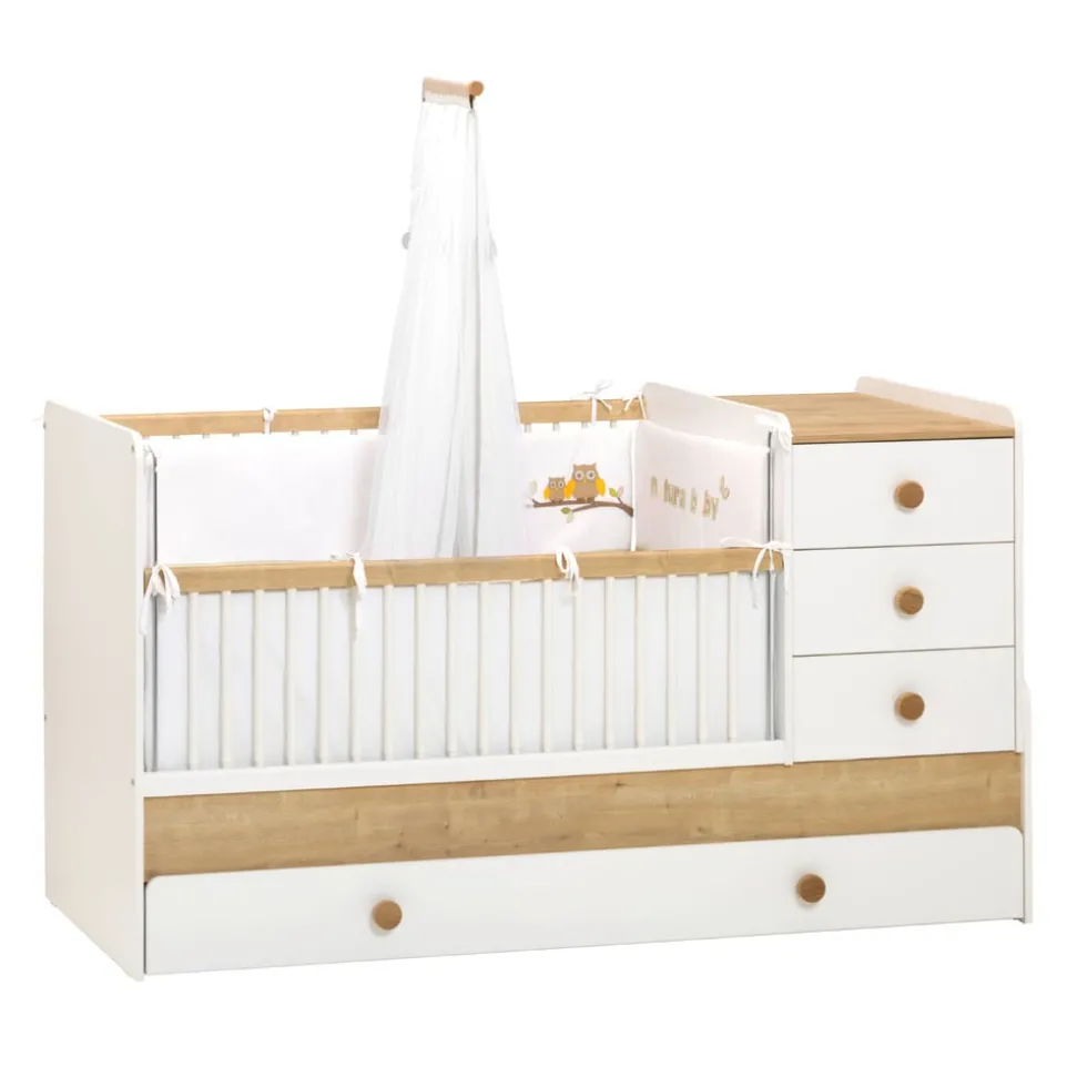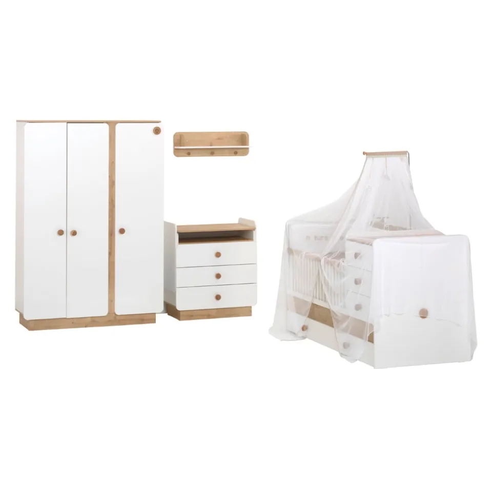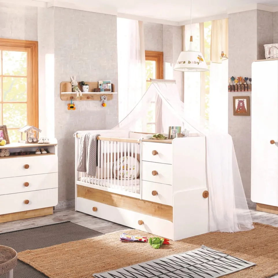 Unter dem zarten Textilhimmel aus Baumwolle für die Bettenkombi CARA schläft Ihr Baby wie im siebten Himmel.
